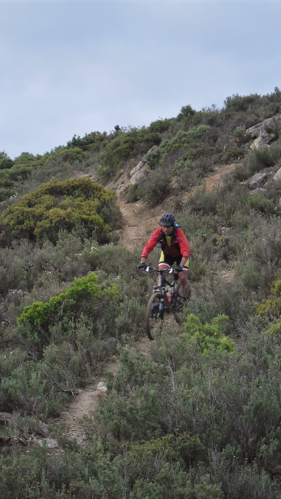 Iniciem la "baixada" i ho faig amb ganes. Els primers "compassos" del senderó són ben plans i amb alguna espona de pujada...... aquest fet, juntament amb la falera meva inicial, em cruixeixen les cames abans de començar el descens. La baixada és molt ràpida i entretinguda, amb algun escaló baix però sense cap contratemps. Solament cal ressaltar com a tram més "complicat" ( entre cometes perquè els que esteu acostumats a anar per sendes no tindreu cap problema) una baixada amb pendent considerable.
